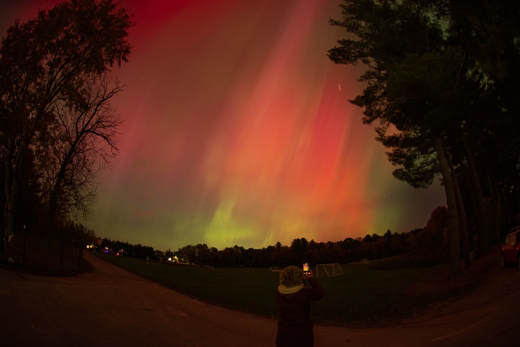 Here are just a select few of the many hundreds of images we took on the night of Oct 10/11, 2024 from the campus fields. The observatory is in the distance to the north. Most of the night, aurora surrounded those of us in the fields: to the north, south, east and west. At times it was so bright that the cameras had to be adjusted so as not to overexpose. Two systems used: Nikon Z9 with 20mm, and Nikon D810A with 16mm fisheye. I got tired just after midnight, and the sky was still aglow. Reports have been coming in that it was still an active storm here until sunrise on the 11th. Quite an event!!