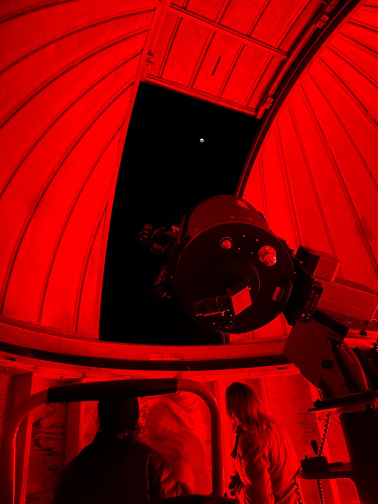 Eclipses are always exciting, a pleasure to experience. This one was an early morning event with questionable weather…. and it was a complete joy to see! We had clear skies in the end, and a small geroup in attendance in the wee hours of the morning of March 14th. We kept the 16″ Schmidt-Cassegrain telescope open for visitors to enjoy, using our lowest magnification (50mm Plössl). The Moon gave us splendid views. Some images captured of the event are below: