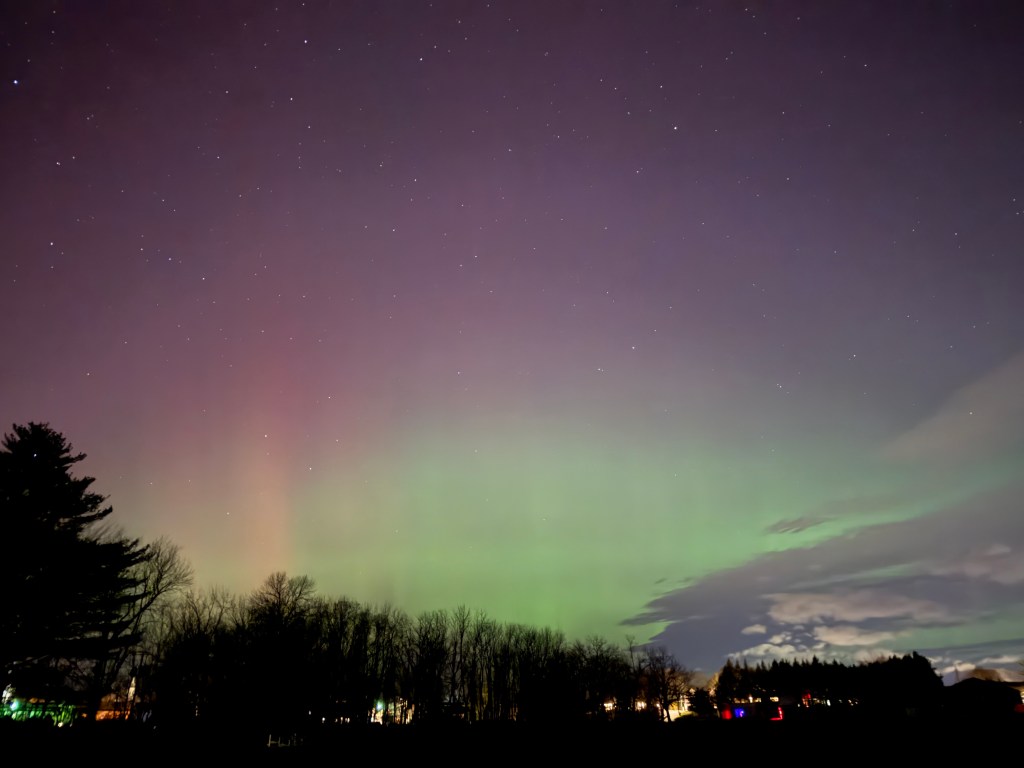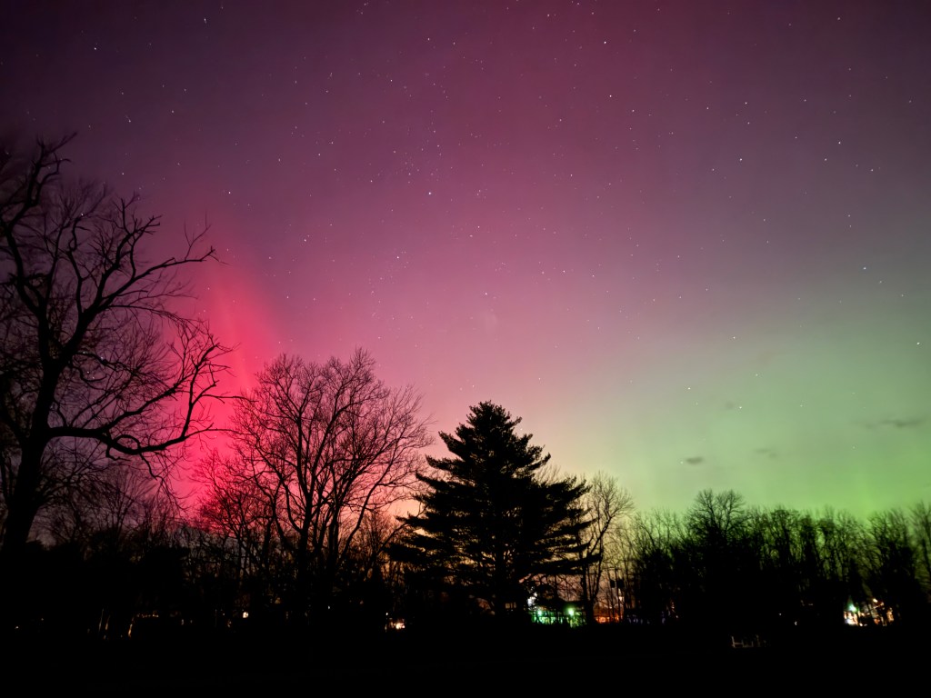 Starting out as faint greyish clouds, we knew these were not regular clouds as they danced and shifted shapes every few seconds. One moment, they would be small patches of light, the next, they would shoot up to the zenith and glow brightly before vanishing completely. As the storm progressed, color became apparent to the eye: pinks, greens, and violets started to show among a wall of color and light that filled most of the northern half of the sky.