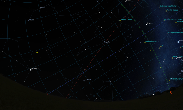 It is that time of year again when we get to enjoy one of the best meteor showers, the Leonids. This one peaks mid-November and stems from the remains of Comet Tempel-Tuttle which has left its debris in a massive orbital path through which our planet passes yearly. This November the peak is on the mornings of November 17th and November 18th. This is not likely to be a storm shower, as we have enjoyed in the past. This is more likely to produce anywhere between 10 to 15 meteors per hour. As with all meteor showers, you will see more if you are far away from city and town lights and have clear, transparent skies. Here in the state of New Hampshire, it will also be chilly, so you’ll want a coat, sleeping bag, and some warm food/drink to enjoy while looking up. The meteors will appear to stream out of the head of Leo, the Lion. This is the sky for those mornings (click to enlarge):
