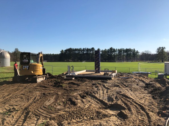 The entrance to the observatory. Note the walls inside have yet to receive their plywood, and the floor needs to have concrete poured.